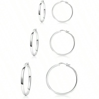 Sterling Silver Hoop Earrings, 3 Pair Lightweight Small Medium, Hypoallergenic 20mm 30mm
