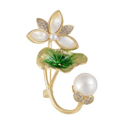 Alilang Elegant Cherry Blossom Flower Plant Brooch Lapel Pin Shell Pearl Leaf Brooches Pins