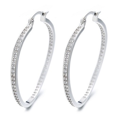 14K Gold And Sterling Silver Twisted Hoop Earrings With Crystal