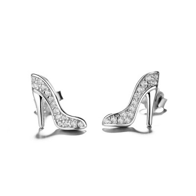 Sterling Silver Minimalist Stiletto Stud Earrings with Crystals