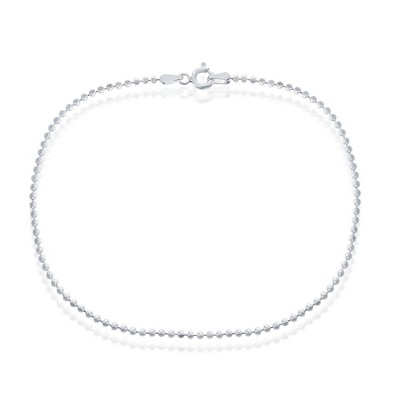 Bella Silver Sterling Silver, 1.5mm Diamond-Cut Beaded Anklet - Silver - 9 Inch