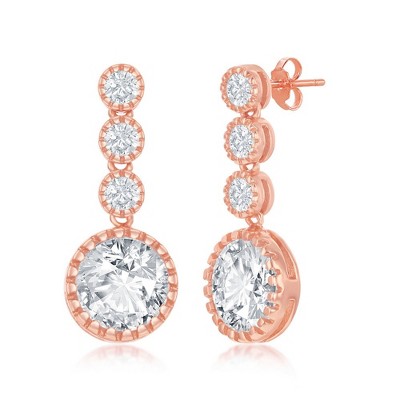 Bella Silver Sterling Silver Round CZ Dangling Earrings - Rose Gold Plated - Rose