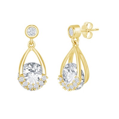 Bella Silver Sterling Silver Pear-Shaped Round Spinning CZ Earrings - Gold Plated - Gold