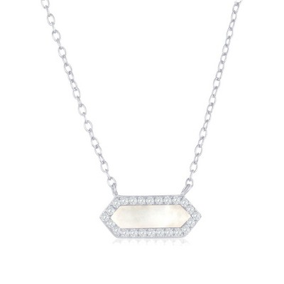 Bella Silver Sterling Silver Double Oval CZ Necklace - Silver - 16+2 Inch