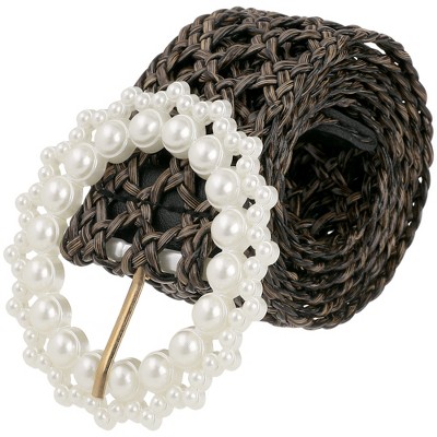 INSPIRE CHIC Womens Braided Woven Hollow Out 1.6" Width Wide Pearl Buckle Bohemian Waist Belts 1Pc