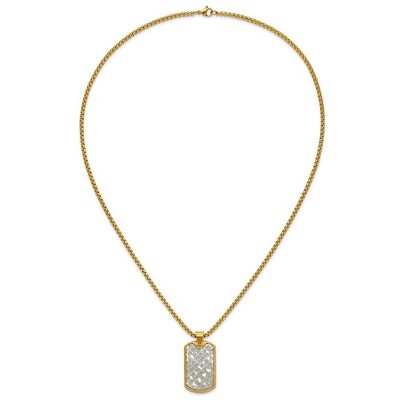 Chisel Stainless Steel and Textured Yellow IP-plated Cross Dog Tag on a 22" Ball Chain Necklace