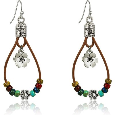 SmallRig Boho Earrings for Women,Handmade Vintage Dangle Drop Earring,Western Country with Nature Stone and Flower