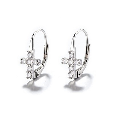 Sterling Silver Dainty Cross Earrings With Crystals