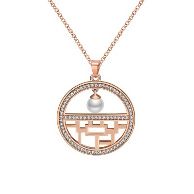 Flower Window Pattern Pendant Necklace for Women Cz Simulated Pearl Ginger Lyne Collection