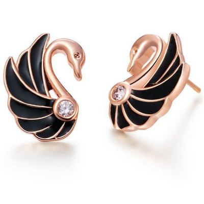 Swan Stud Earrings Black Gold Plated for Women Ginger Lyne Collection