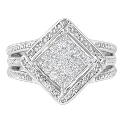 Haus of Brilliance Silver 2/5 Cttw Princess Cut Diamond Cluster Composite Cocktail Ring