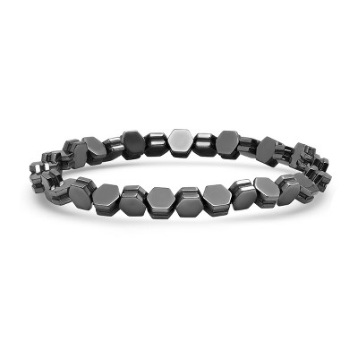 Steeltime Men's hexagon hematite beaded bracelet