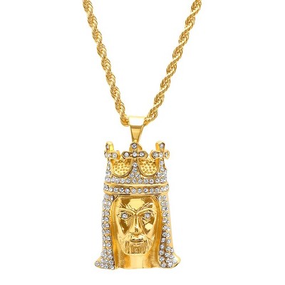 Steeltime 30" 18k gold plated stainless steel simulated diamond king pendant