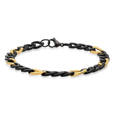 Steeltime Men's two tone stainless steel figaro chain bracelet. Color Options: Blue, Gold, Multi, Silver