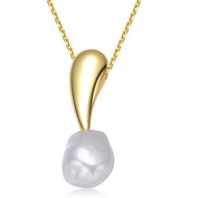 Guili 14K Gold Plated Necklace with Cubic Zirconia & Faux Pearl, featuring a Fern Leaf Pendant for a unique, nature-inspired accessory.