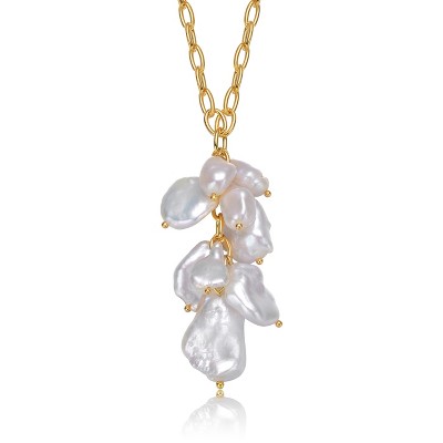 Guili Elegant Sterling Silver 23MM Gold Plated Baroque Freshwater Pearl Pendant Necklace, a timeless piece to elevate your collection.