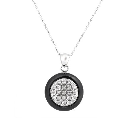 Guili Halloween Sterling Silver White Gold Plating with Clear Cubic Zirconia Lace Design Drop Pendant Necklace