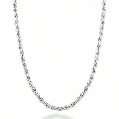 Solid Sterling Silver 2mm/3mm Diamond - Cut Braided Rope Chain Necklace for Men Women