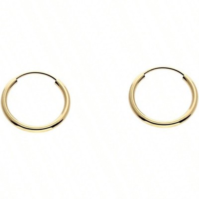 Yellow Gold Endless Hoop Earrings, Thin, Small, Flexible, Continuous Real Pure Gold Hoops