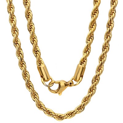 Steeltime Men's stainless steel rope chain necklace. Color Options: Silver, Gold, Black, Rose Gold. Size: 24", 30"