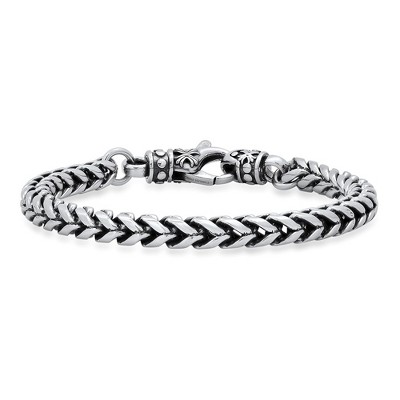 Men's Polished Byzantine Chain Black and Blue Stainless Steel Necklace
