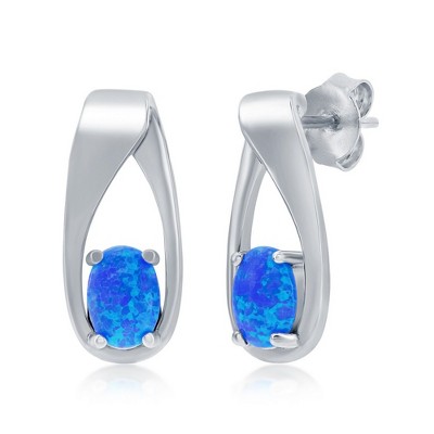 Opalata Sterling Silver Blue Inlay Opal Open Oval w/Blue Teardrop CZ Earrings - Blue