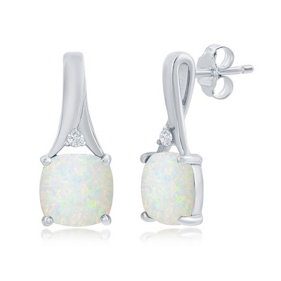 Opalata Sterling Silver White Opal & CZ Earrings - White