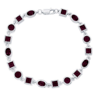 Simona Sterling Silver Oval & Square Gem Bracelet - Garnet - Red - 7.5 Inch