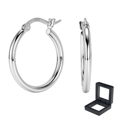 925 Sterling Silver Earrings for Women, 20mm White Gold Hoops, Minimalist and Elegant Design, Fine Jewelry