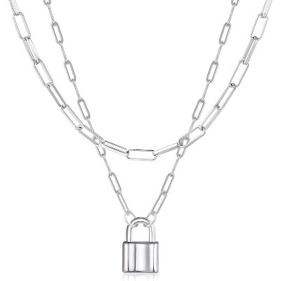 14K Gold Plated Lock Necklace - Paperclip Link Chain with Padlock Charm, Non-Tarnish Jewelry
