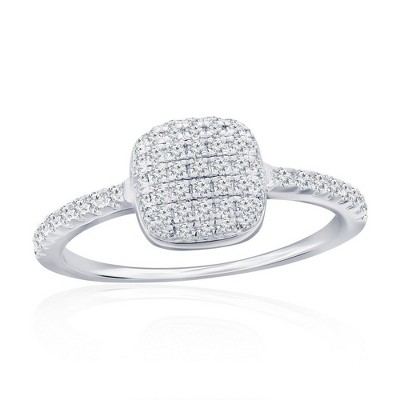 Bella Silver Sterling Silver, Square Polished & Pave CZ Half Eternity Ring - Available Sizes: 9 , 8 , 6 , 7