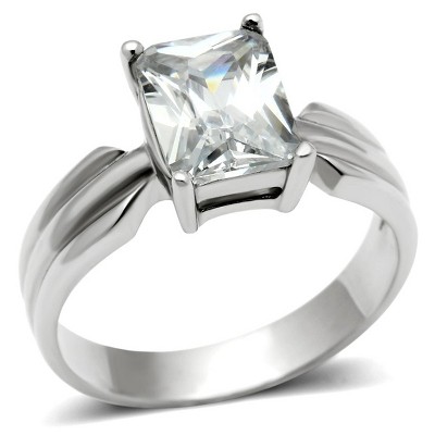 Slickblue Women’s Stainless Steel Ring, Polished Clear Square CZ, Solitaire Style Fashion Ring, Size 5-10