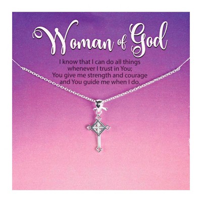 Dicksons Woman Of God Diamond Cross Silver Plated 18 Inch Stainless Steel Necklace On Presentation Card