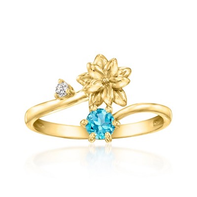 Ross-Simons Poinsettia Flower/December Birthstone Ring With .20 Carat Swiss Blue Topaz and Single Lab-Grown Diamond in 18kt Gold Over Sterling