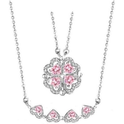 SmallRig Sterling Silver Heart & Four Leaf Clover Convertible Pendant Necklace with Crystals for Women