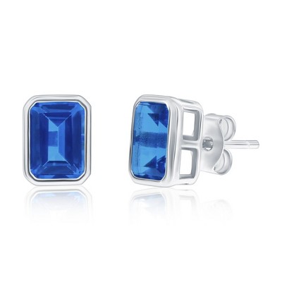 Bella Silver Sterling Silver, Birthstone Rectangle CZ Studs
