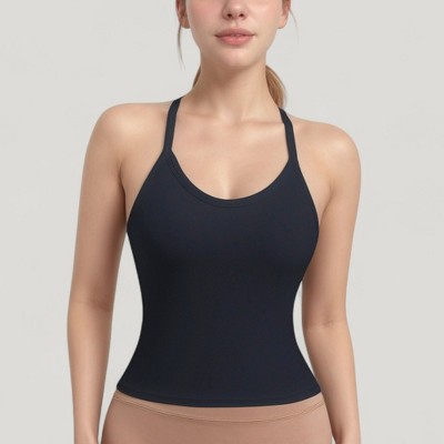 Anna-Kaci Active Women's Strappy Crisscross Back Athletic Tank Top with Built-In Shelf Bra