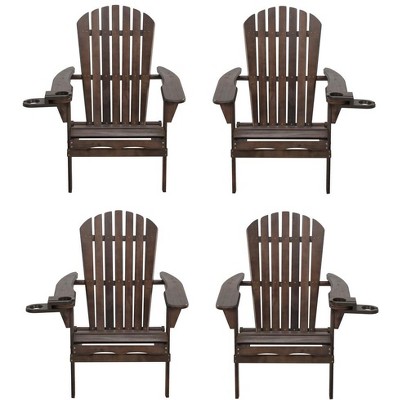 GDFStudio Outdoor Acacia Wood Foldable High Back Adirondack Chairs (Set of 2)