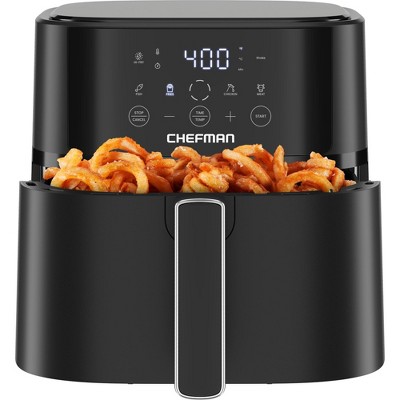 Enjoy your favorite fried food when you have an Air fryer at home. An Air fryer is a kitchen appliance that cooks by circulating hot air around food. They do a fantastic job cooking up frozen foods that are meant to taste deep-fried. You can air fry french fries, crispy chicken wings, mozzarella sticks and more. Air frying gives you the crunchy texture of fried foods without the extra grease and fat. Most fryers are easy to clean, have dishwasher-safe containers and occupy less space than convection ovens. An Air fryer can function like convection ovens, deep-fat fryers, and multi-cookers; they combine benefits of multiple appliances. At Target we have a wide range of Airfryers with different functions and styles. You can choose a fryer that has features to fit your needs. Whether it is a toaster-oven, convection oven or a traditional pot style cooker, you can find one at Target. In the range, you can find cookers that can be pre-programmed if you are someone who is always on the move. We also have different brands to choose from like Chefman, Cusinart, Ninja Foodi, Philips and more. Pick an Air fryer from our superb range and switch to oil-free, oil-less and quick frying.