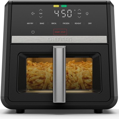 Enjoy your favorite fried food when you have an Air fryer at home. An Air fryer is a kitchen appliance that cooks by circulating hot air around food. They do a fantastic job cooking up frozen foods that are meant to taste deep-fried. You can air fry french fries, crispy chicken wings, mozzarella sticks and more. Air frying gives you the crunchy texture of fried foods without the extra grease and fat. Most fryers are easy to clean, have dishwasher-safe containers and occupy less space than convection ovens. An Air fryer can function like convection ovens, deep-fat fryers, and multi-cookers; they combine benefits of multiple appliances. At Target we have a wide range of Airfryers with different functions and styles. You can choose a fryer that has features to fit your needs. Whether it is a toaster-oven, convection oven or a traditional pot style cooker, you can find one at Target. In the range, you can find cookers that can be pre-programmed if you are someone who is always on the move. We also have different brands to choose from like Chefman, Cusinart, Ninja Foodi, Philips and more. Pick an Air fryer from our superb range and switch to oil-free, oil-less and quick frying.