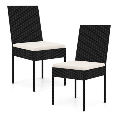 Costway PE Wicker Patio Chairs Set of 2/4 Outdoor Dining Chairs with Cushions