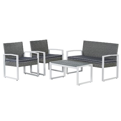 Elina 4-Piece Modern Coastal Faux Wicker Conversation Outdoor Patio Set - JONATHAN Y