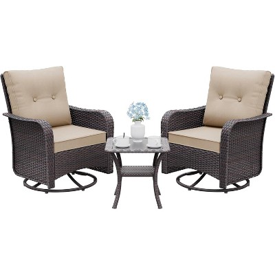 Selby 3-Piece Modern Coastal Faux Wicker Conversation Outdoor Patio Set - JONATHAN Y