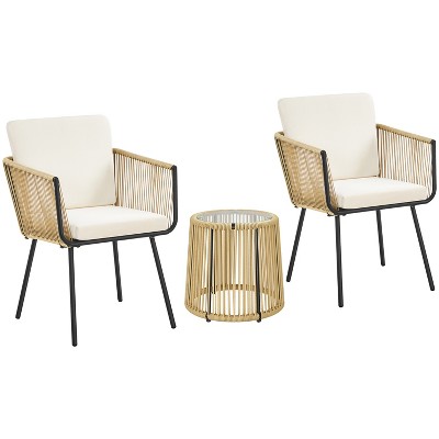 Yaheetech Wicker Rattan Coffee Table and Two Chairs Patio Conversation Set