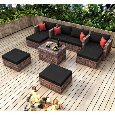 Whisen 5-Piece PE Wicker Patio Conversation Sofa Set with Cushion