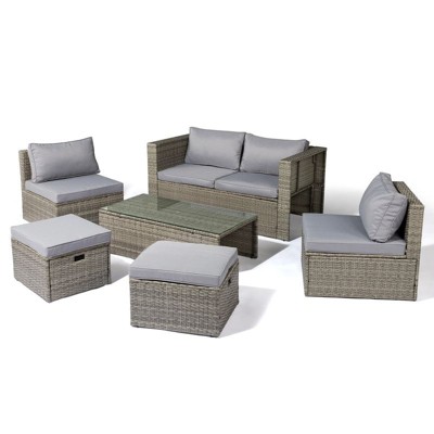 ALAULM Rattan Patio Furniture Sets 13 PCS w/Firepit table, outdoor wicker sets