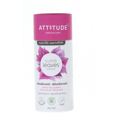 Attitude Deodorant Super Leaves White Tea Leaves Scent, Natural Aluminum-Free Odor Protection, 3 Oz