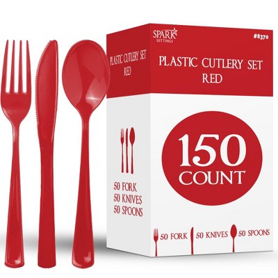 150 Pack Plastic Silverware Heavy Duty, Disposable Cutlery, 50 Spoons, 50 Forks, 50 Knives, Plastic Utensils Set for Party - SparkSettings