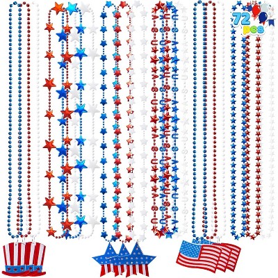Joyfy 72 Pcs Patriotic Bead Necklaces, Red White Blue Star Pendant Bulk Set for Independence Day Parades Memorial Day Parties and Dress Up Events