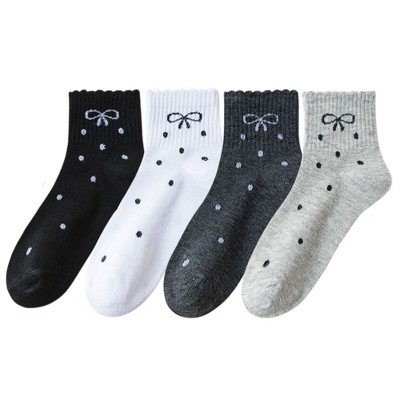 Anna-Kaci Women's Soft Cotton Ankle Socks with Bow Embroidery Polka Dot Design 4 Pairs